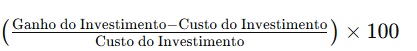 Esse cálculo fornece a porcentagem do retorno em relação ao valor investido, ajudando a ver se o seu dinheiro está sendo bem aplicado.
